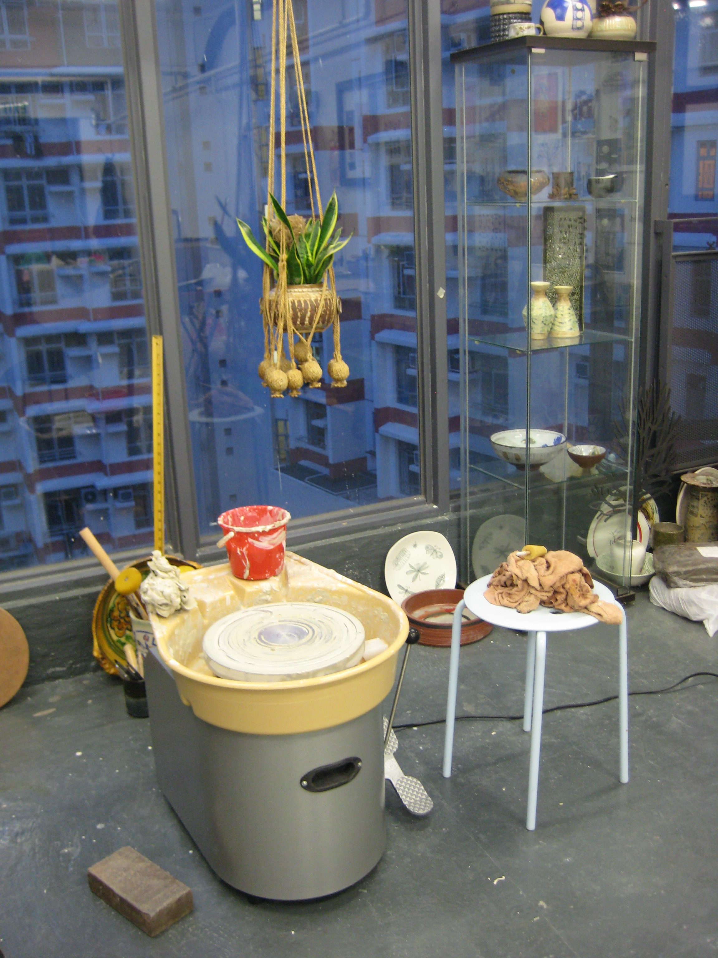 My first brand new piece of equipment. My kilns are pre-used and one has travelled all the way from Stoke to keep me company in HK. The wheel before and after its first throwing session, sooo exciting! It’s nice to have such a level, firm base to work on. Not quite as serious as Michael Cardew but doing my best…”I got the blacksmith and the carpenter to make me a kick wheel, with the active support of my father – that is to say, he paid for it.”